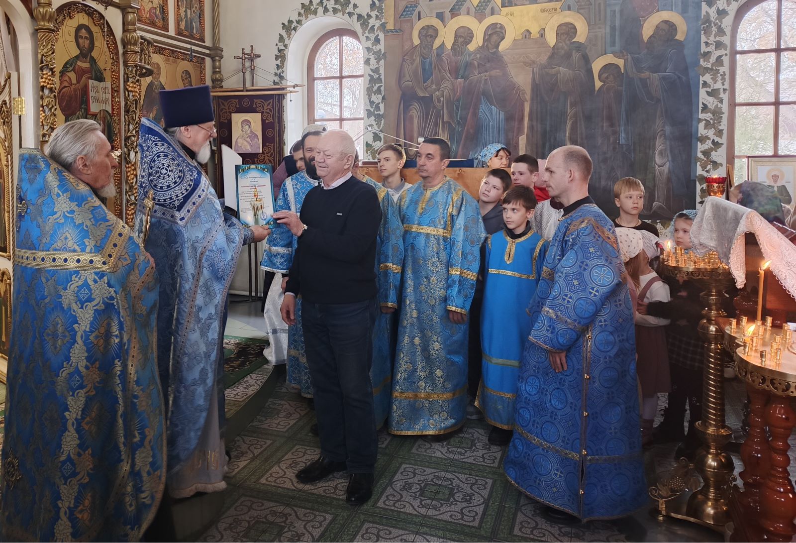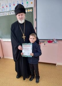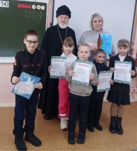 Настоятель бородинского храма протоиерей Владимир Пермяков поздравил воспитанников Воскресной школы и гостей с праздником, подвел итоги сретенской выставки детских творческих работ. Воспитанники Воскресной школы, участвующие в конкурсе, были награждены дипломами и сертификатами.